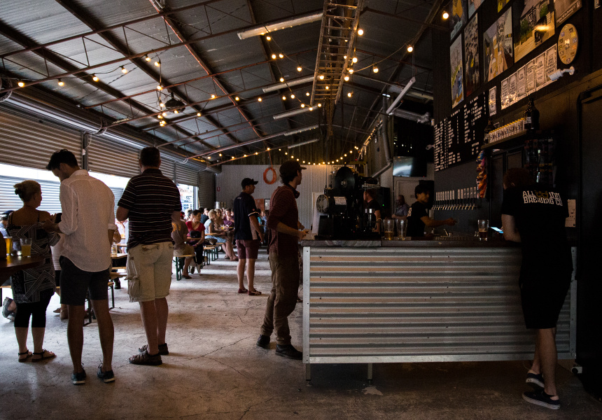 Finding a run-down, former panel-beating warehouse closer to his Brisbane home, he emptied the shell. Next he installed timber-clad vats behind a whopping recycled timber bar, and set aside car-park space for family friendly outdoor seating, food trucks and live music.