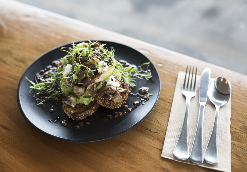 Breakfast and lunch options include The Golden Temple (Panko-crumbed chickpea fritters with natural yoghurt and tahini) and La Bamba (Mexican green-chilli burger in a Japanese-style milk bun served with shoestring fries). The counter also holds a neat little sweets pantry with plant-based bars and slices from Compassionate Kitchen and gluten-free snack bars from G Luxe.
