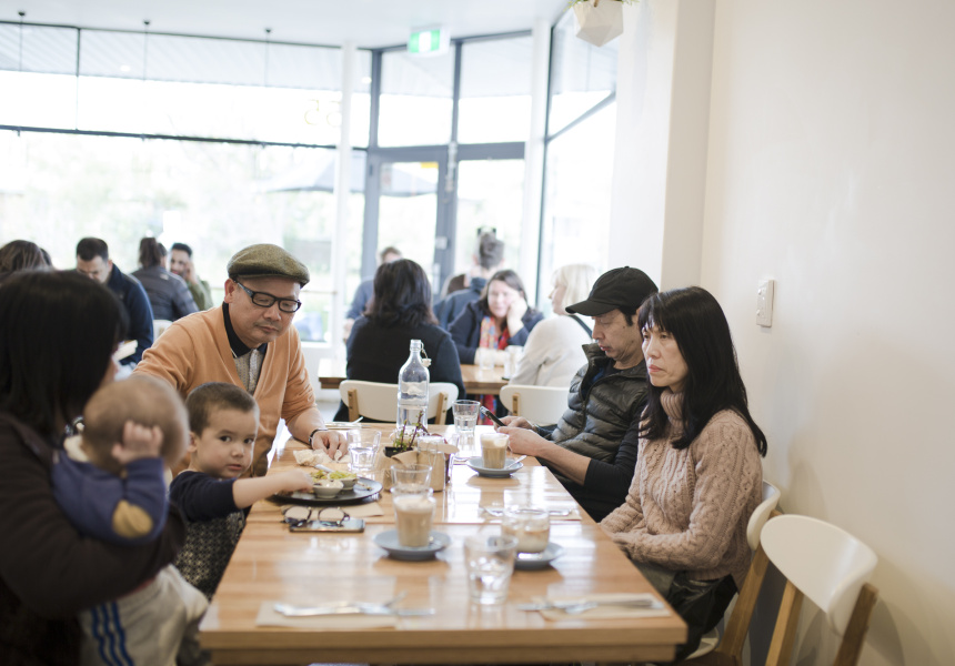 The fit-out brings together fresh white walls and Scandinavian simplicity. Baharian’s father – a carpenter by trade – built and designed the hardwood tables. He’s the “woodpecker” and she’s the “little woodpecker” the cafe is named after.