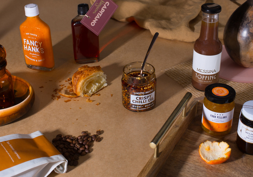 Two non-IRL options are virtual grocer Co-Lab Pantry, with souped-up staples from some of Melbourne’s best (think Chotto Motto ’s crispy chilli oil, Ides peanut butter, and St Ali ’s gin-spiked mayo); and Mat’s Hot Shop, a new online hot-sauce store with 120 small-batch bottles, including a fiery chilli-honey that’s my kinda pizza topping.