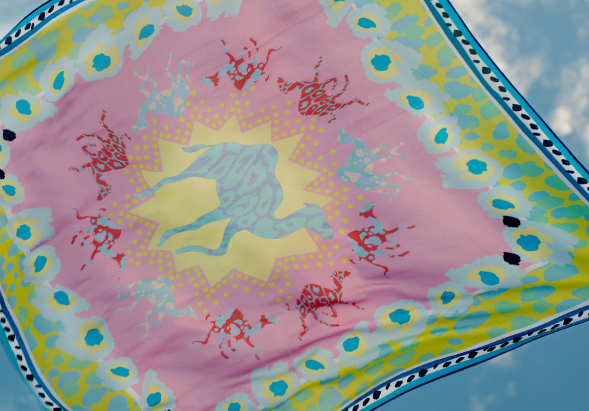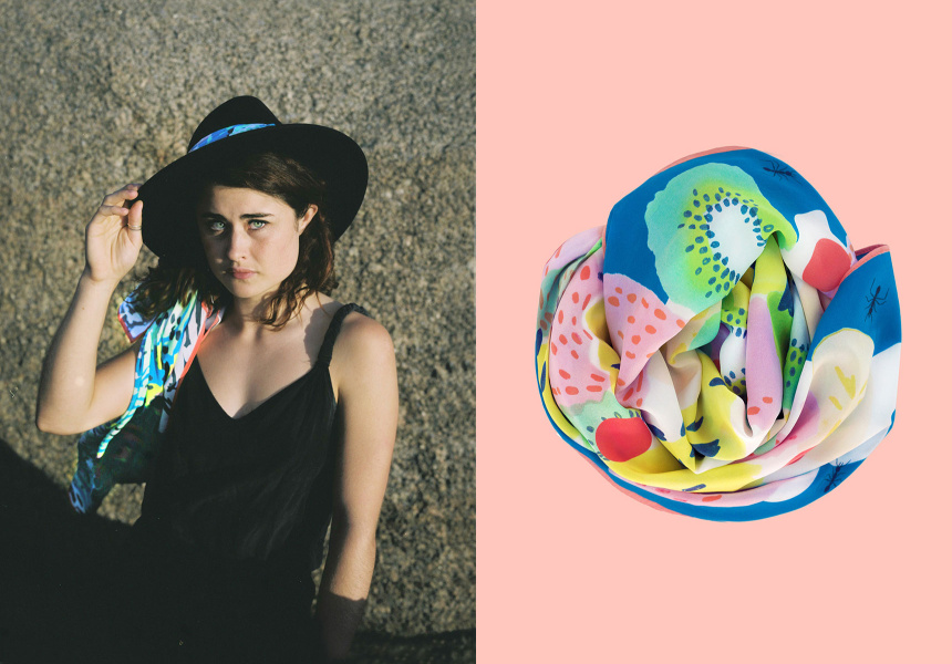 The designer and textiles Masters graduate has released her latest line of fashion accessories, which is inspired by the country she grew up in during the golden (Gaytime) age of the ’80s and ’90s. It’s called Straya Daze and is as sticky and sweet as watermelon dripping down your arms and as bright as the January sun in your eyes.