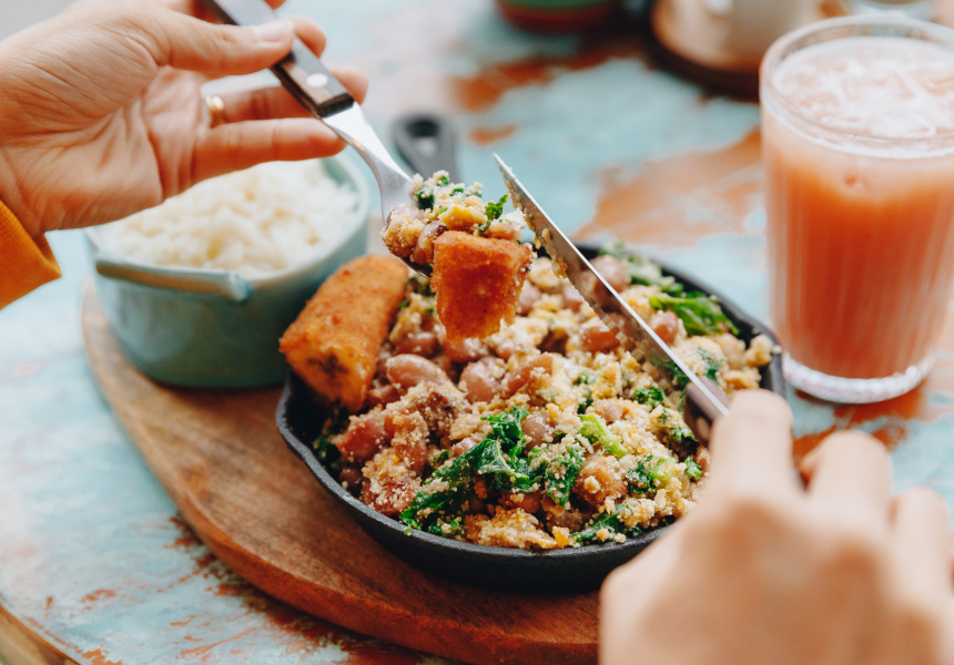Feijoada is a hot, spicy stew of black beans, pork, pancetta, chorizo and kale. A lighter alternative to this rib-sticker is moqueca, a seafood stew the Gebailes make with barramundi in a lightly spiced vegetable and coconut-cream broth. Both these dishes have vegan counterparts, too.