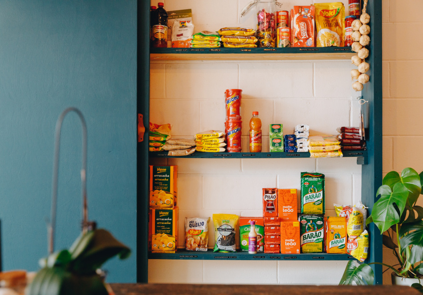 On shelves by the door sit brightly coloured rows of jars of pickled peppers (“like at grandma’s,” says Gabriel), and you can buy Brazilian grocery items to take home, too.