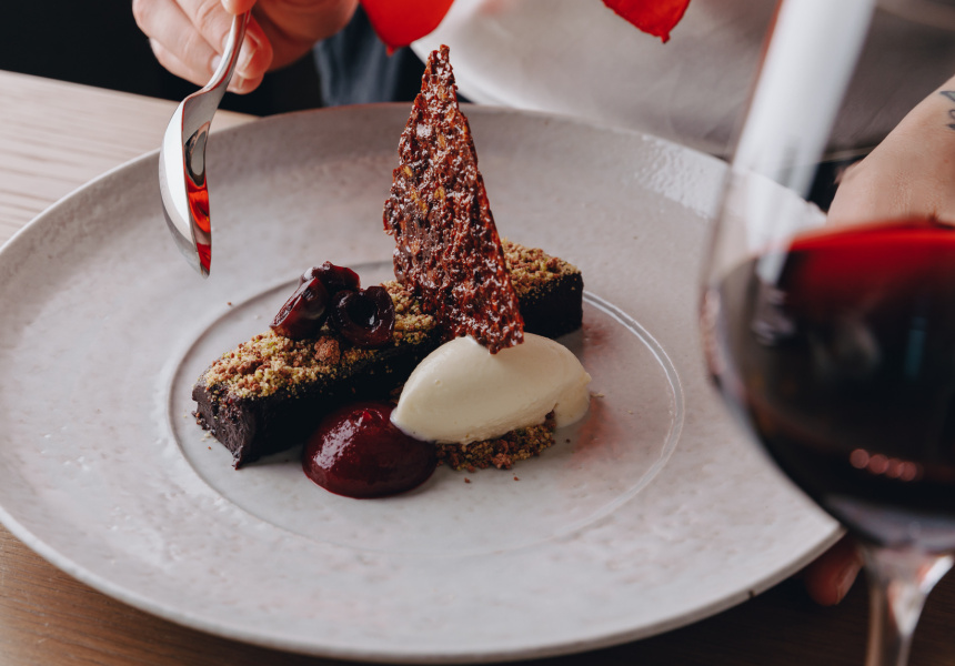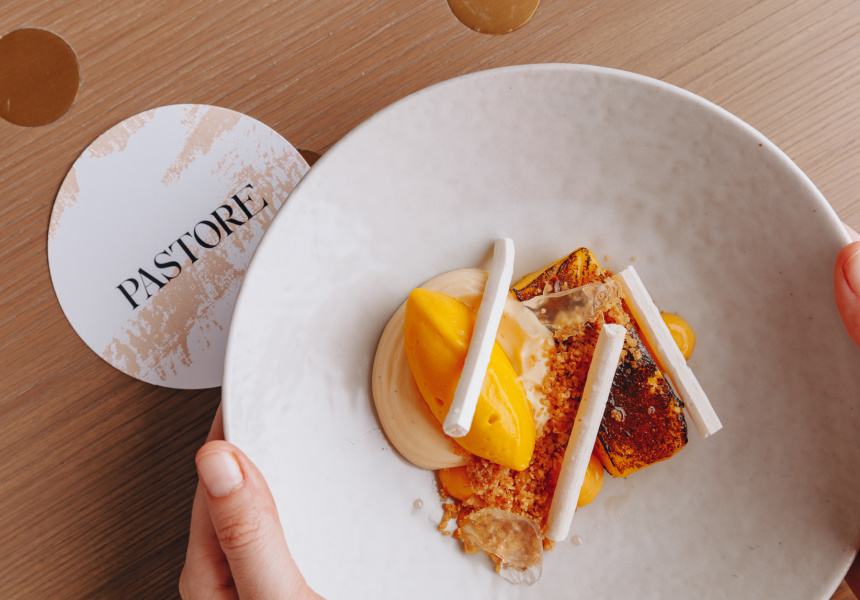 The other side of the Pastore coin – the open flame – informs the larger dishes. Wood-grilled barramundi marries with burnt blood oranges and fennel. Dry-aged lamb is cooked on the open flame, too. It’s served with charred leeks and sheep’s milk yogurt. A 1.2-kilo dry-aged bistecca fiorentina steak is designed to share.