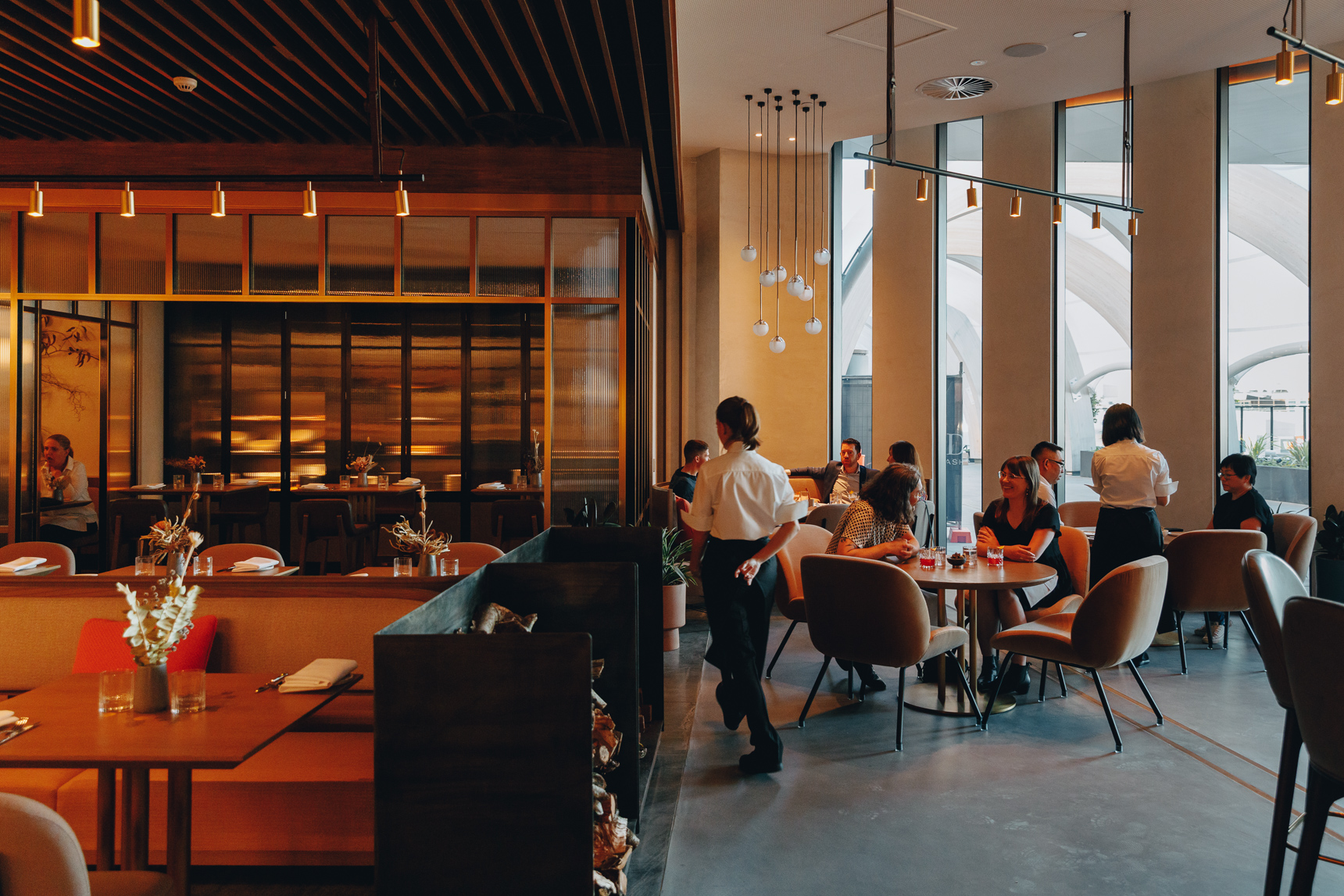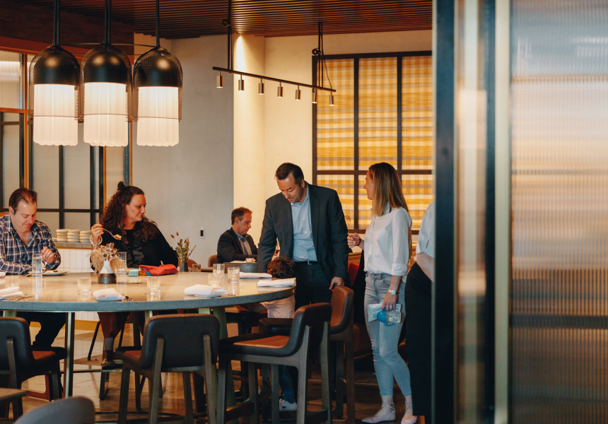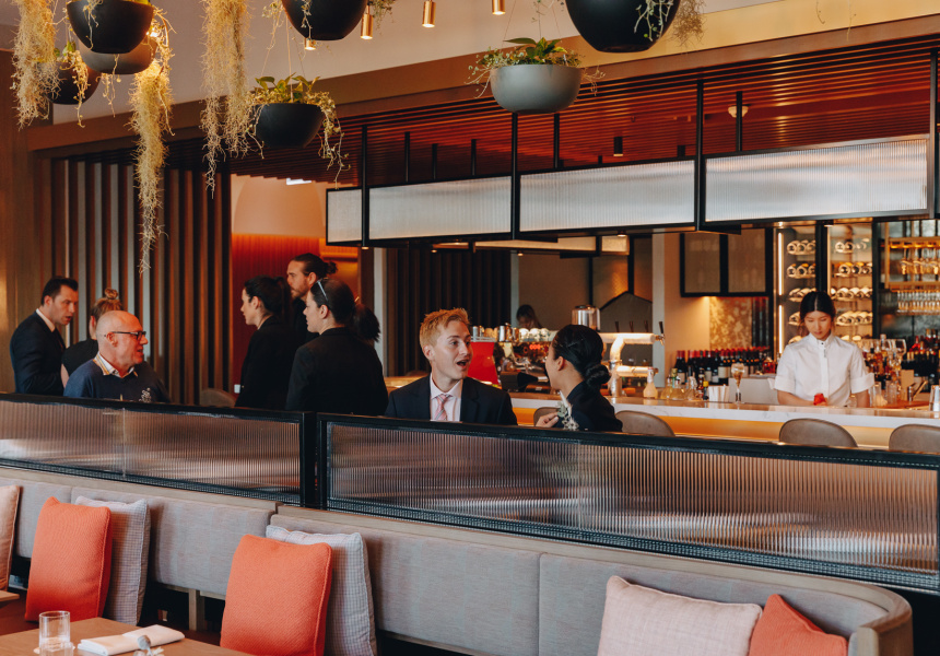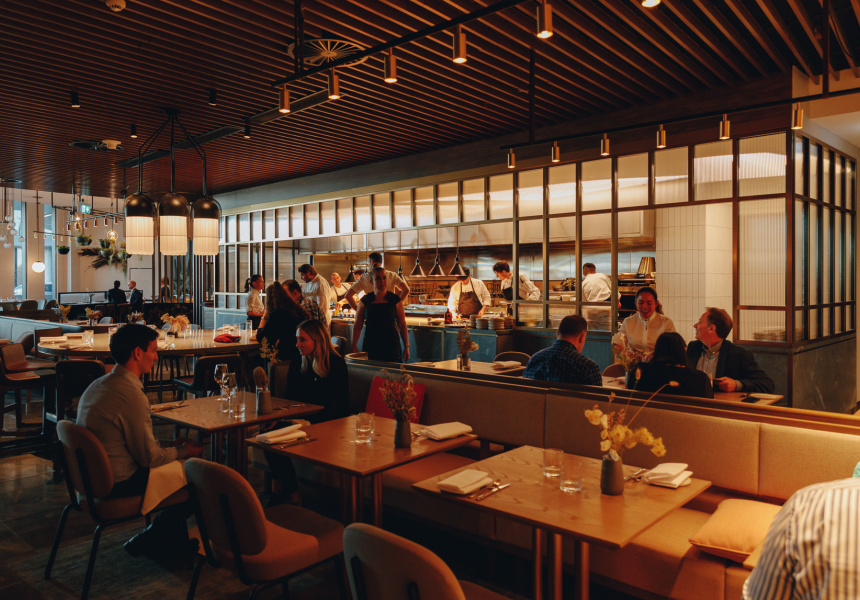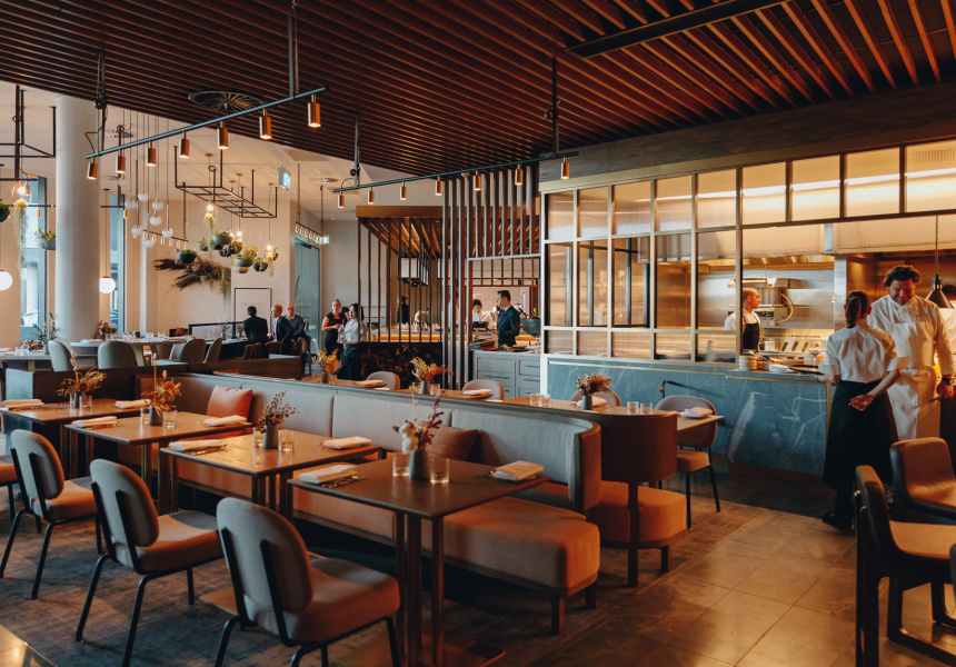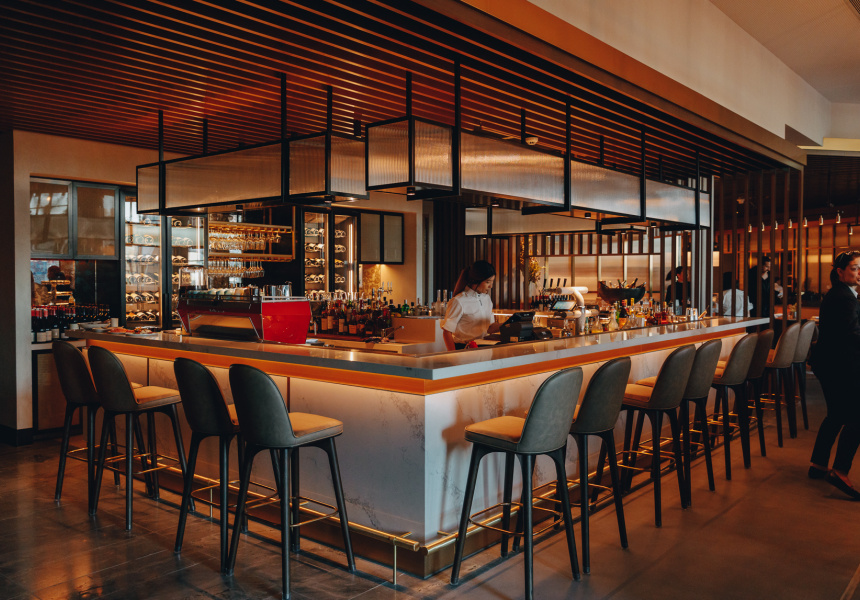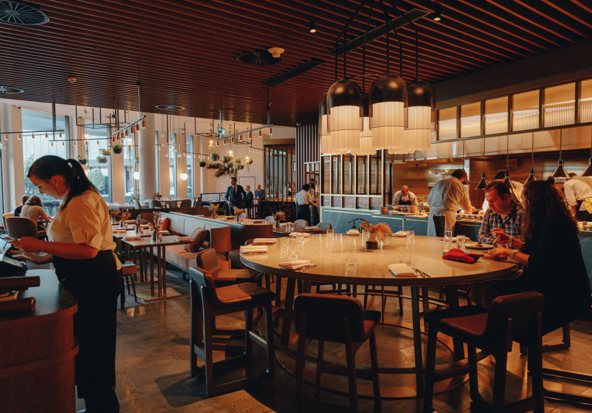 The simplicity of this vision is a stark contrast to the sleek exuberance of Sofitel’s new luxury Hotel Chadstone, in which the restaurant sits. It’s all waves of glass and marble columns propping up very high ceilings. Pickett tells me hotel management originally pitched the idea of bringing Matilda, his fire-focused South Yarra diner, out east. Hence the woodfired grill.