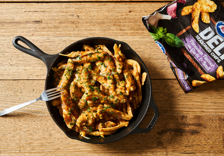 Cook the Birds Eye Deli Seasoned Chips Parmesan, Garlic & Basil as per the packet instructions until golden and crispy