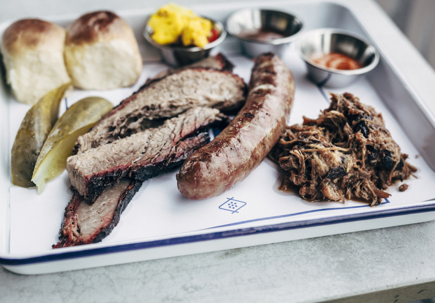 Especially for a barbeque joint where the star feature is a $20,000 smoker. The big, red, double-barrelled beast – also known as a Yoder Frontiersman – burns overnight, slowly cooking and smoking brisket, pork shoulder, ribs and sausages.