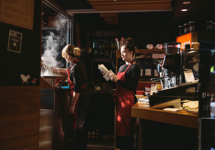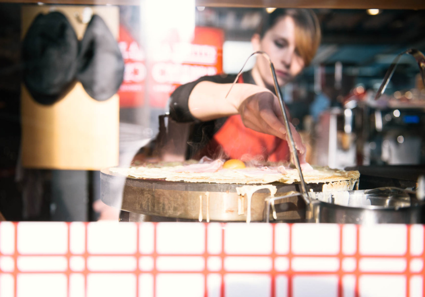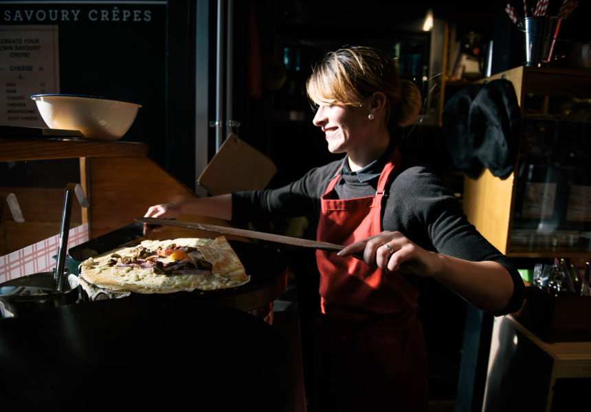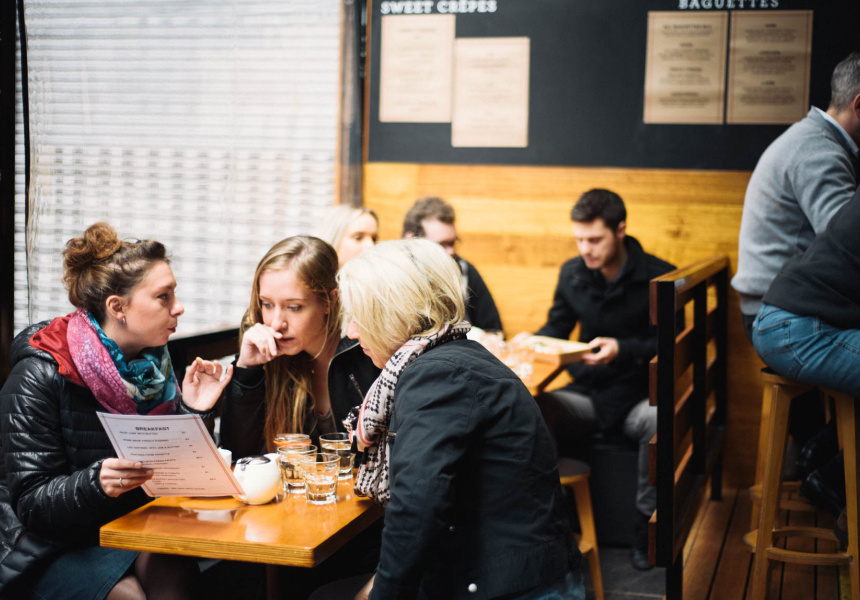 This cafe offers breakfast and lunch to go. Otherwise, feel welcome to take a seat and have a chat with Gatta-Castel in English or French. It’s a no-fuss menu, but choosing a crêpe filling can be a pleasant predicament to be in. Goats cheese, fig-and-ginger jam and the classic lemon and sugar are just some of the options.