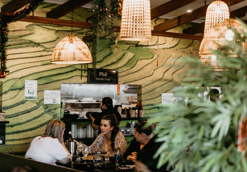 Centred on a spacious dining room dotted with rustic light fixtures, Mr Bun Mi aims to make Vietnamese cuisine accessible to everyone. That means maintaining the requisite authentic dishes but also offering a bit of everything across more than 100 menu items, including Aussie-style desserts and a Vietnamese-infused kids’ section. There are four distinct kinds of banh mi to try, plus spring rolls, dumplings, rice paper rolls, Vietnamese curries, rice vermicelli noodles, and of course, pho.