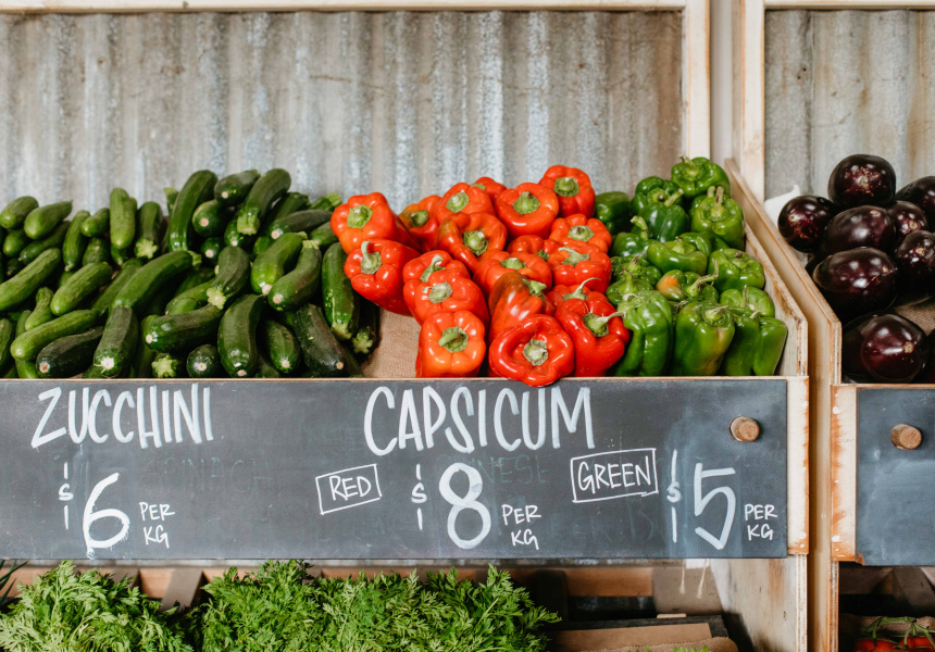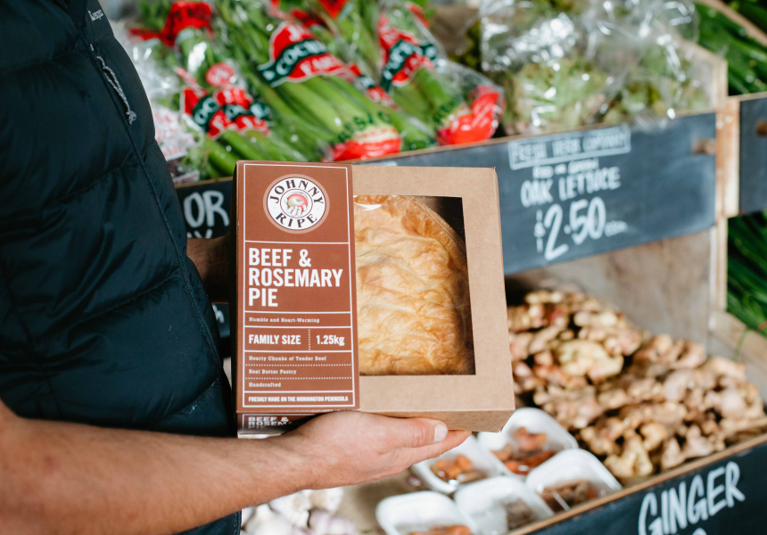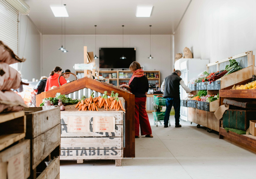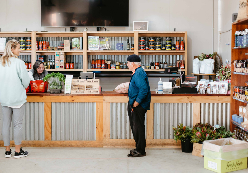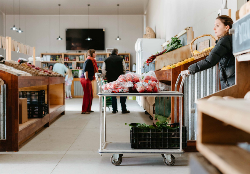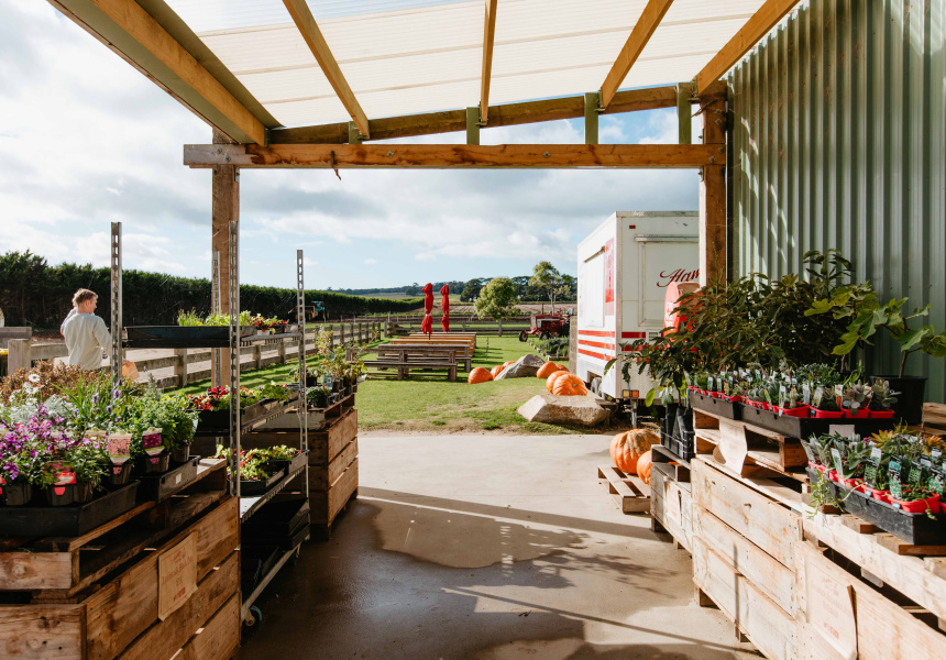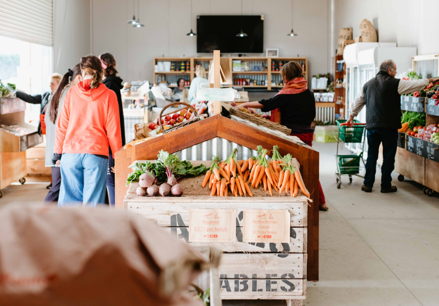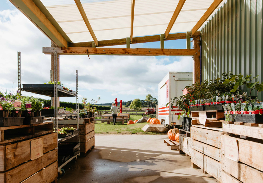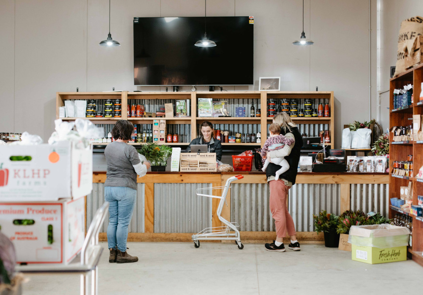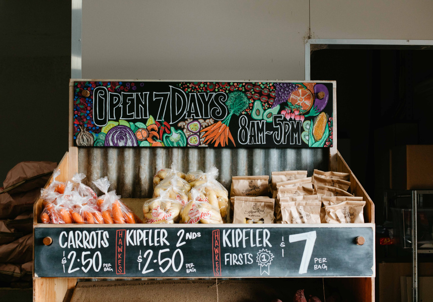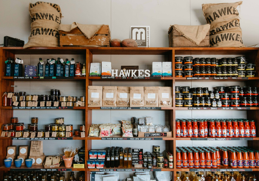 In addition to produce grown at Hawkes Farm, the shop stocks local staples such as Tuerong Farm flour, truffle aioli and honey from Red Hill Truffles, Johnny Ripe pies, Mock’s sparkling juices, and bread from Peninsula Baker Boys and Rye Sourdough Co.