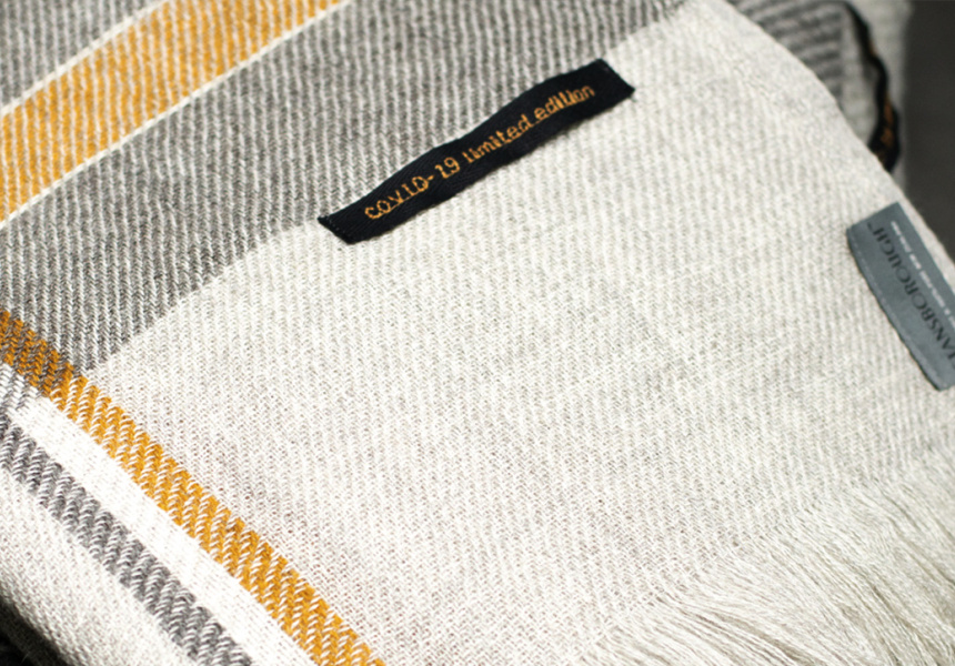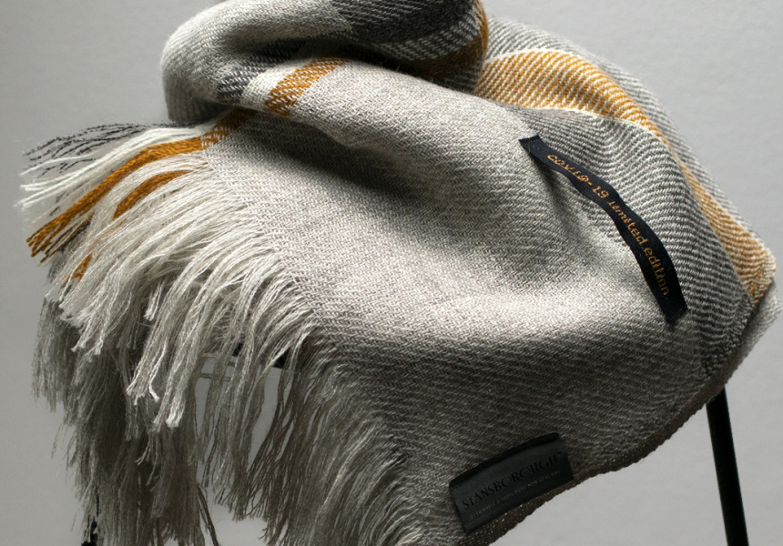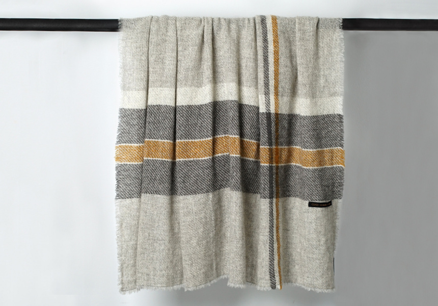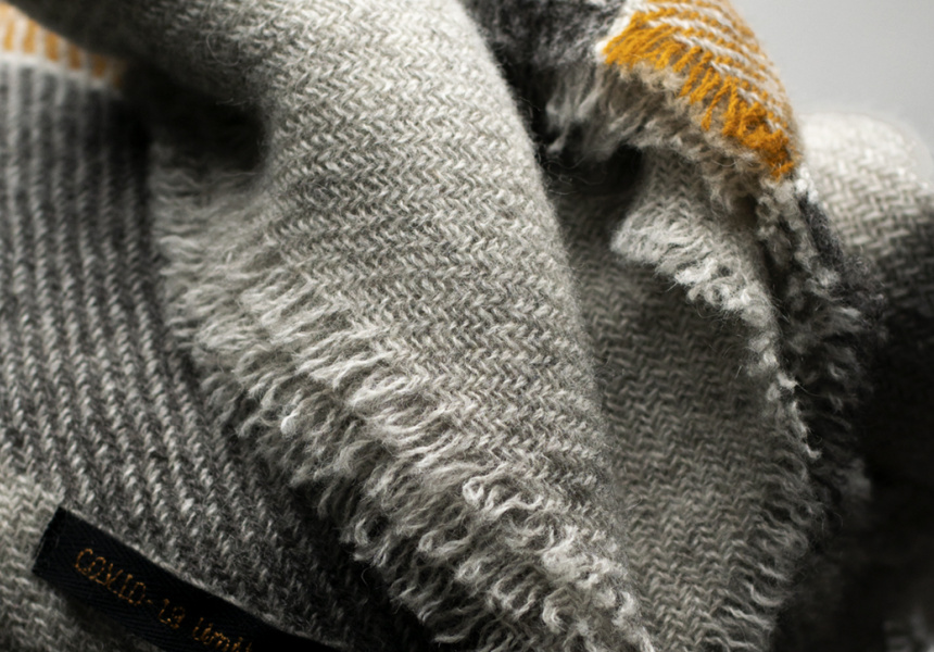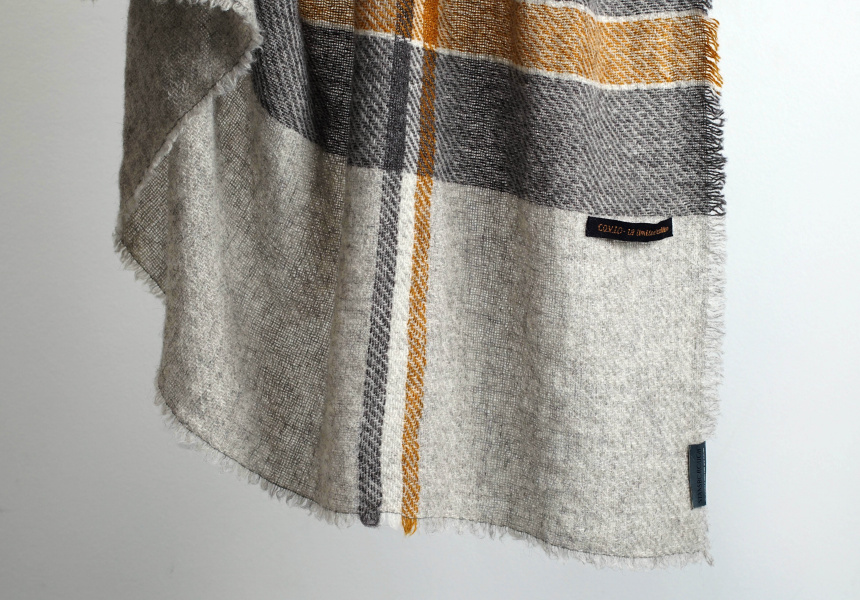 That range is a blanket and a throw, both hand-woven to order on looms from the 1890s, using Stansborough wool in its signature greys, with a yellow stripe. “The pale grey and the dark grey stripe is 100 per cent natural. And the gold is eco-dyed [coloured with plant-based dyes],” says McFadden. “We could have done all the greys but we wanted to introduce a colour for a brighter, more positive outlook.” Fifty dollars from every sale will go to one of the two charities.