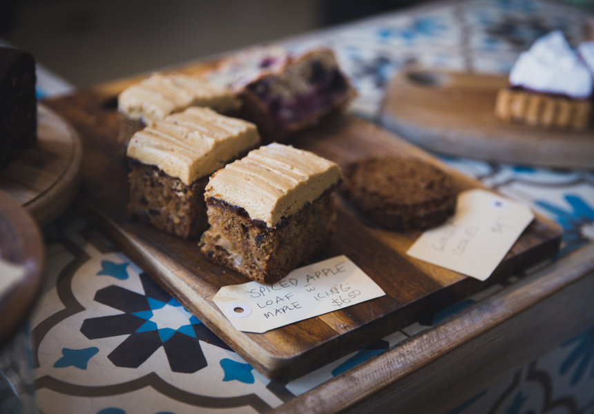 It’s a highlight of chef Dru Kokkinn's menu, which focuses on organic produce, including Mount Cotton mushrooms and Gippsland Blue cheese. By 1.30pm it’s the house-made layer cakes, tortes and slices luring the surrounding office-workers in for post-lunch business meetings. “No two days are the same here,” Boydell says. “We’ve always got a new crowd with lots of travellers. It’s interesting trying to piece together what everyone’s story is.”