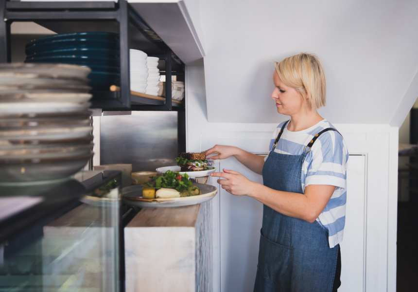 As the kitchen preps for the venue’s Nordic-Japanese menu – which includes sticky mushroom brioche with Japanese slaw, and Honningkage (Danish honey cake) with gingerbread polenta – Jackson opens the cafe at 7am and begins chatting to regulars picking up their morning coffees.