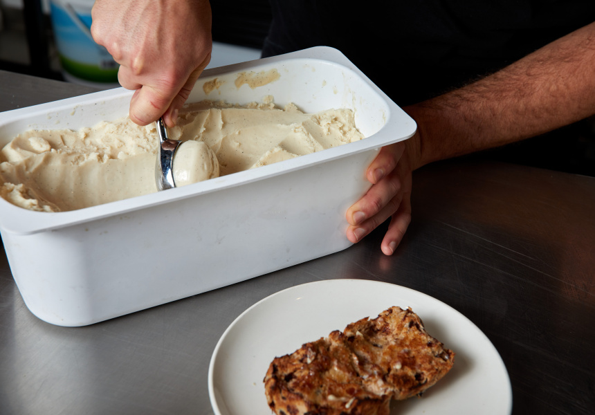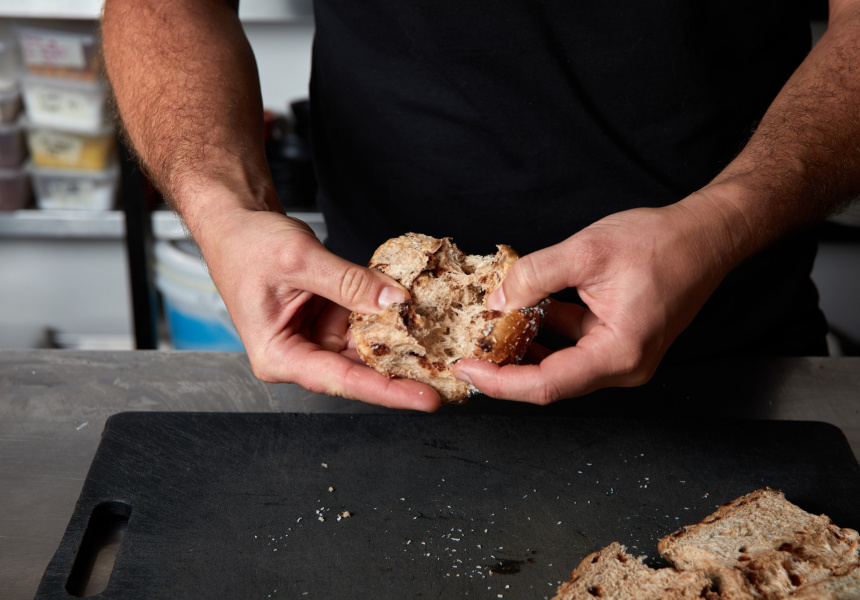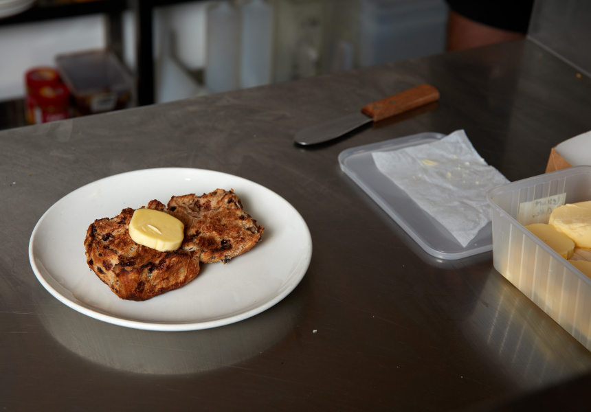 Before you dismiss Free’s next serving suggestion, remember that genius is rarely appreciated in its time. “I’m not opposed to putting an egg on it,” says Free. “I would toast it, good amount of butter, then just a fried egg, sunny side up. A little bit of chilli or garlic chilli oil on top. It’s a perfect marriage between a berry hot cross bun and a McMuffin.”