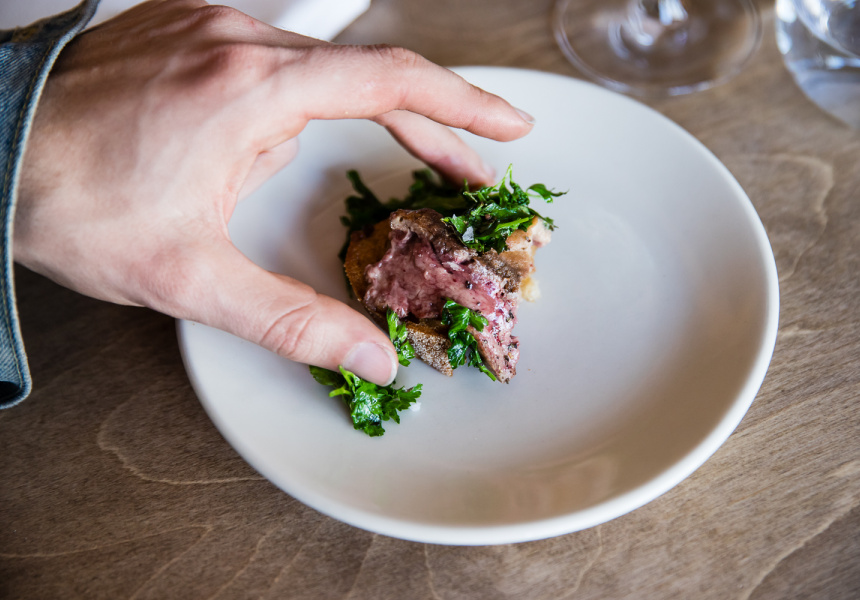 Not everything is a two-week production. Niland and his kitchen are just as capable of taking dazzlingly fresh sardines from Lakes Entrance in Victoria, cleaning, beheading and trimming them up then simply dressing the raw, shiny bodies with very good olive oil. A short spell under the heat lamps brings the fish to temperature and accentuates its latent oiliness, enjoyed alongside superbly dense rye and barley flour sourdough spread with pale cultured butter. It’s a win for the simpler things.