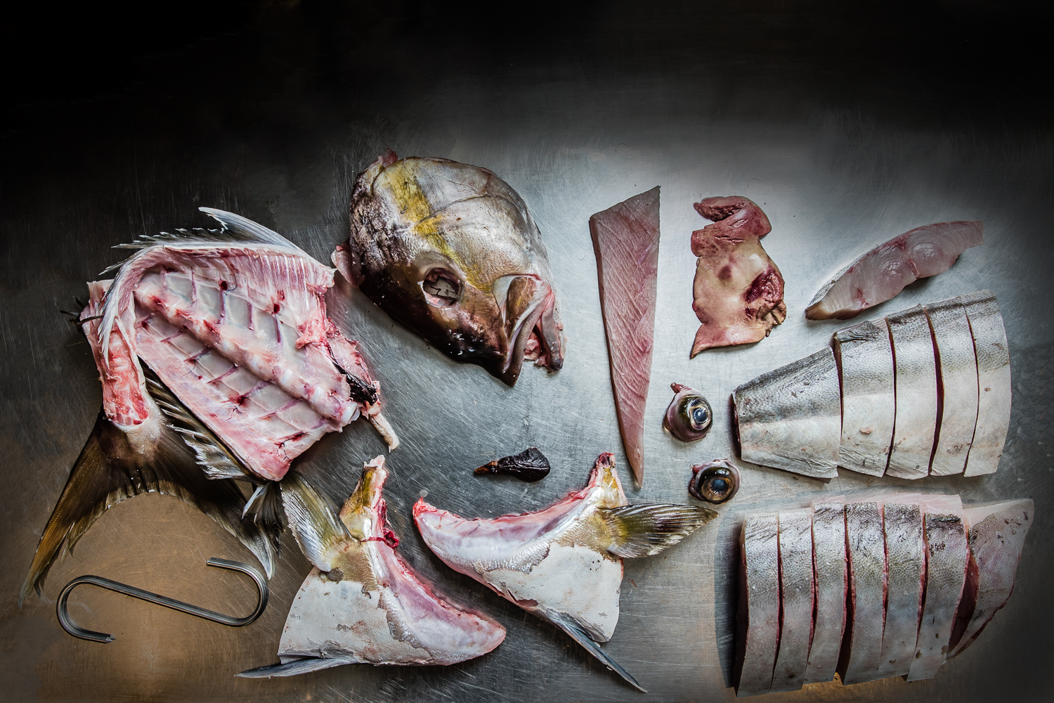 The fish that Niland sources – and, more importantly, doesn’t source – is just one part of the sustainability focus. The other is what the kitchen does with it, in particular, its off-cuts. As anyone who follows Niland on Instagram will attest, our man is a dab hand at cutting fish. At almost any given time, Niland’s story or live video will feature footage of him breaking down a fish Dexter -style into fillets and B-sides. As is the norm in any profitable kitchen, this resourcefulness is primarily about maximising the return on every ingredient in your pantry, but here it’s also the catalyst for creative seafood cooking that’s as frugal as it is delicious. Hapuka liver toasts taste like fishy foie gras (sans, of course, the guilt that comes with eating the livers of force-fed poultry). Thick slices of terrine starring grouper head meat are suspended in seafood aspic. Fish eyes get reincarnated as grey, wispy crackers: the perfect two-bite chariots for a daub of excellent smoked eel brandade.