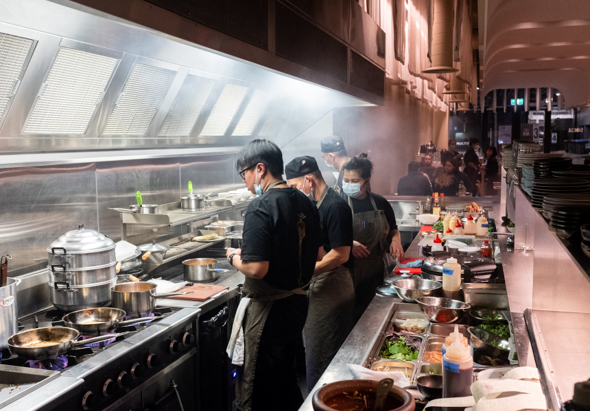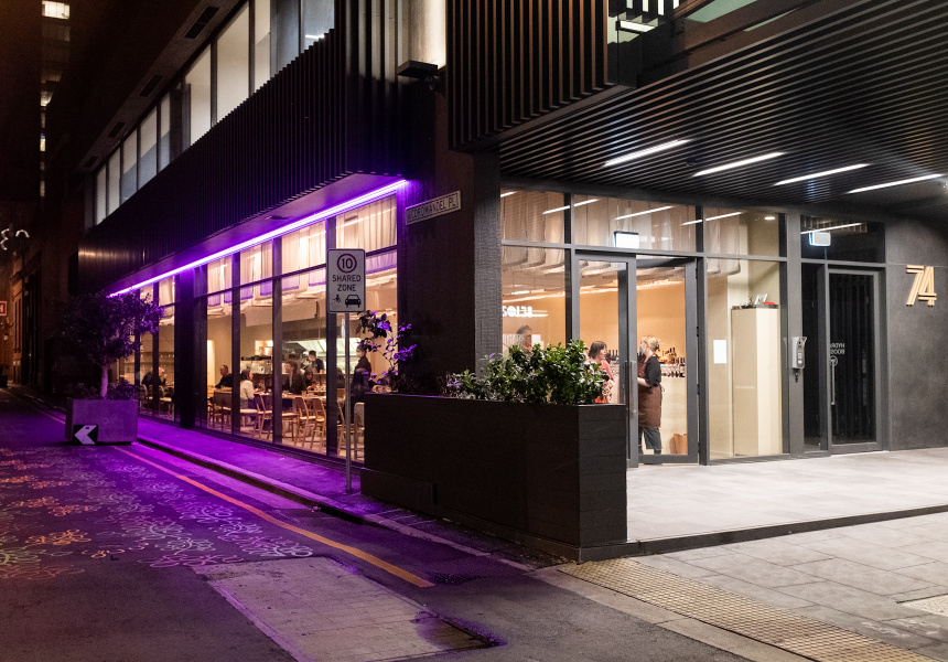After months of anticipation and extended delays, Soi 38 finally reopened at a former Subway on Pirie Street, and its new iteration feels like the restaurant it was always meant to be. Regional Thai cooking remains the name of the game and chef Terry Intarakhamhaeng works hard to ensure eaters are all winners. While perennial favourites such as pan-fried chive cakes and crisp pork belly remain, guests can now take aim at crab legs with Asian celery, curry powder and chilli jam; roasted eggplant with chicken larb and nam jim; and crunchy sago crackers carting shredded duck with lime and ginger. Rather than giving the traffic-light curry treatment – green, red and yellow – to the usual proteins, the revamped Soi 38 does its thing with venison (grilled and served with nam jim and tomato paste), wild buffalo (served tartare), kangaroo tail (in a Penang red curry), marron (served with pork belly and vermicelli) and pippies (with chilli crab oil). Local makers feature prominently in the fit-out, including tables, chairs and steel bar tops by Remington Matters; brown bar stools from Jam Factory; and the bar itself, with its rammed-earth aesthetic, by Love Concrete.