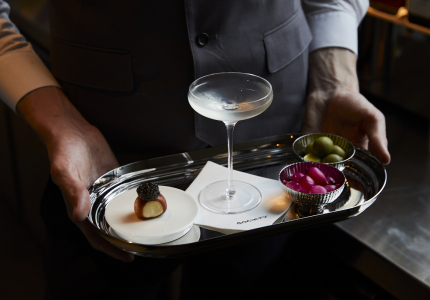 It’s taken four years, but Society – a collaboration between leading Melbourne restaurateur Chris Lucas (Chin Chin, Baby Pizza, Kong, Hawker Hall, Kisumé) and chef Martin Benn and front-of-house star Vicki Wild (the duo behind Sydney’s internationally regarded Sepia) – is finally here. And impressively, the project lives up to its considerable hype. From the scale and ambition of the space – charcoal booths and three colossal chandeliers made from more than 3000 hand-cut crystals beautify the special-occasion-ready space – to the depths of the wine cellar, filled with more 10,000 bottles of the good stuff chosen by a former Fat Duck drinks wizard. It’s an ideal stage for Benn to flex his muscle, and he makes the most of it – whether it’s an Instagram-ready arrangement of edible leaves in a jelly pool flavoured with a French dessert wine, Sauternes, or a rondelle of finely diced albacore with rhubarb and shiso. Beyond the main event, there’s a bar and a more casual restaurant, the Lillian Terrace, which opens this Friday. Society, according to its partners, is a place for everyone. “The whole idea was to create a dining experience where guests can curate their own experience,” says Benn. “We want it to be à la carte, but not restrictive and with no rules about ordering.”