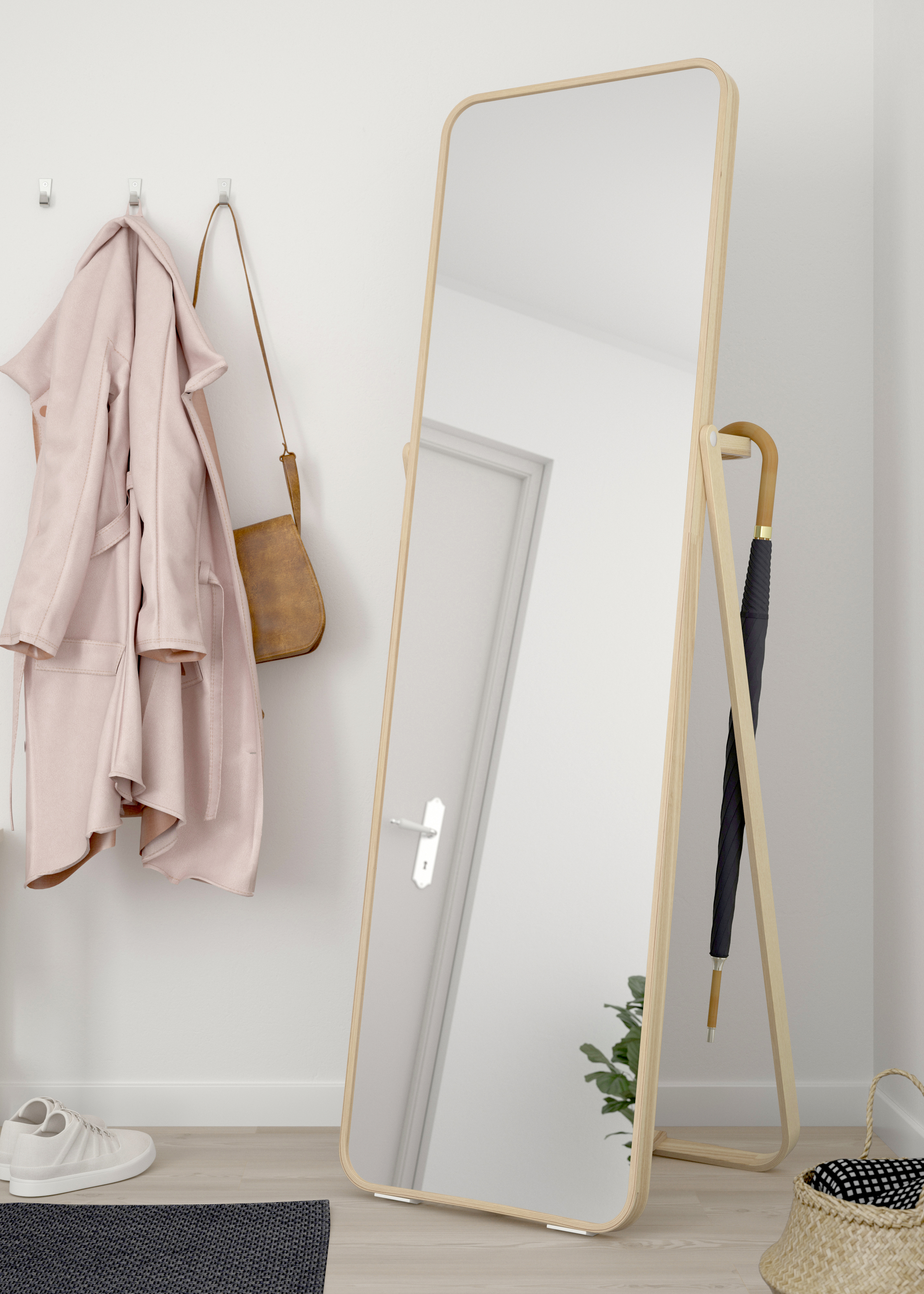 The only free standing, full-length mirror in the line-up, this minimal IKEA design is a classic addition to any bedroom. With a subtle beech wood frame, large mirror surface and hanging rail at the back, it meets a range of aesthetic, practical and financial demands.