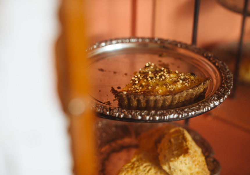 Maybe it’s the shelf of eclectic, thrifted crockery or the fact that they don’t do frothy coffees (there’s Coffee Supreme filter). The Rosebank Road space is compact with a high ceiling, textured plaster walls and a warm peach and mustard colour palette.