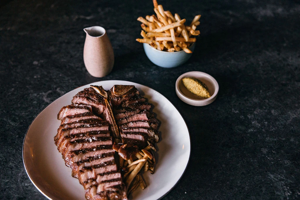 You might start with miso mushroom french toast and kingfish crudo with smoked bone dressing before moving onto larger dishes like chou farci and coal-roasted market fish with broccoli sambal and mussels.