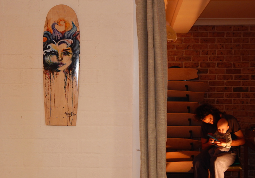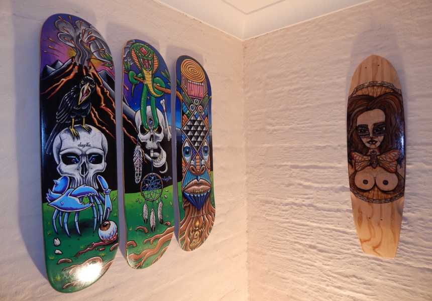 “It takes me about four-to-five hours to shape one board,” Anderson says. “My process is longer than other guys who are doing it, but I really enjoy custom shaping boards – working with a client to make design tweaks and fussing over every single inch.” The boards are made from skate-industry standard Canadian maple, though Anderson wants to use Australian woods as a tribute to the local landscape. The finishing touch is then engaging local artists to paint the decks with custom designs – from Studio Ghibli tributes to original artworks.