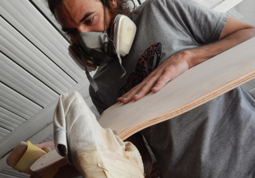 Daniel Anderson shapes custom skateboards by hand.
