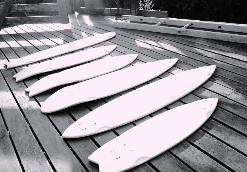 Daniel Anderson did exactly that. After leaving a stressful job in media sales, Anderson went traveling and surfing the east coast, stopping when he got to Crescent Head on the NSW north coast. Having skated since he was a kid in Brisbane, Anderson originally got into longboards through his love of riding waves, which evolved into to a desire to channel surfboard shapes into skateboards. Achieving styles he couldn’t find on the conventional market was the original goal, and it led to the creation of Crescent Head-based bespoke skateboard business, duskie.