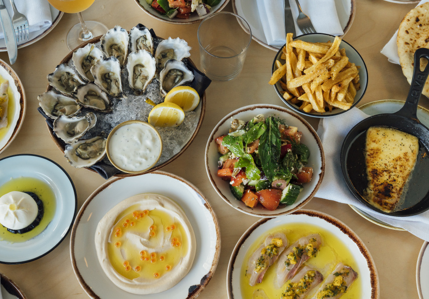 While the atmosphere at Topikós is certainly casual, executive chef Danny Corbett’s menu features elevated takes on dishes you might find holidaying in the Greek Islands. The offering varies between the main dining room and the lively bar area, but both are open for all-day dining seven days a week, and serve meze favourites such as saganaki dressed with honey and black pepper, and taramasalata (order house-made puffy pita bread to swipe through the pink roe dip). Those in the dining room might order heartier dishes such as slow-cooked lamb shoulder with pomegranate glaze and tirokafteri (feta dip), and Hapuka steamed in vine leaf.