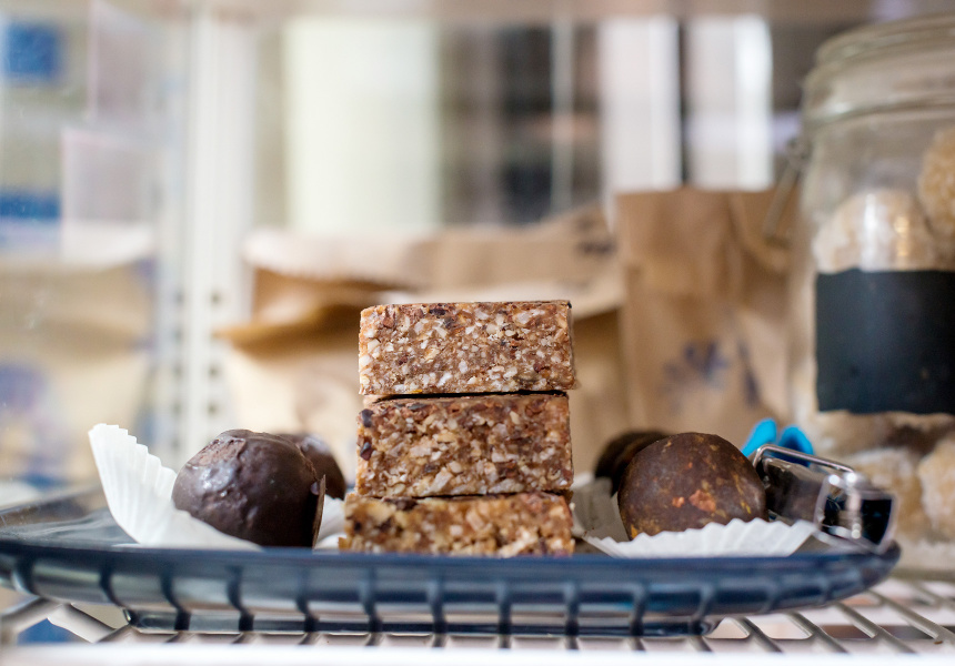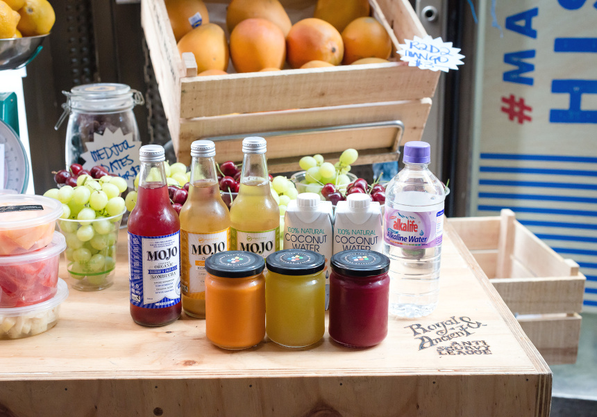 “We basically emptied the kiosk of soda and sugary snacks and now we have alkaline water, cold-pressed juice, coconut water instead,” says Paul Toia, who together with Bettina McIllraigh and Fleur Chesterman make up the League. “We’re focused purely on health and giving that to the CBD.” It’s a big mission for the tiny three-by-three-metre space, but it’s proving popular.