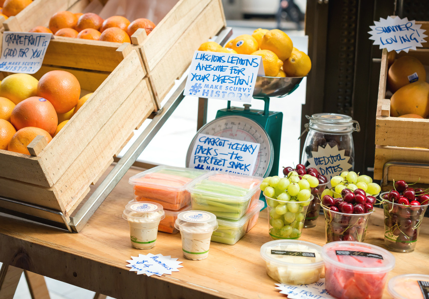On the corner of Pitt and Rowe Streets in the CBD there’s a tongue-in-cheek battle taking place. The Royal and Ancient Anti-Scurvy League – a humble fruit kiosk serving healthy snacks to the time-poor of the city – is on your side.