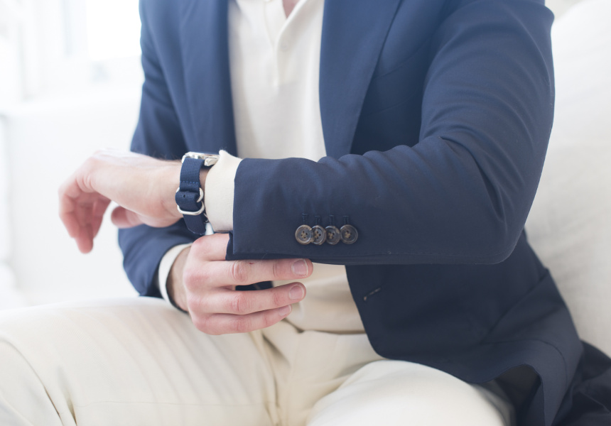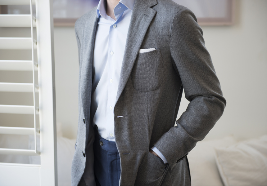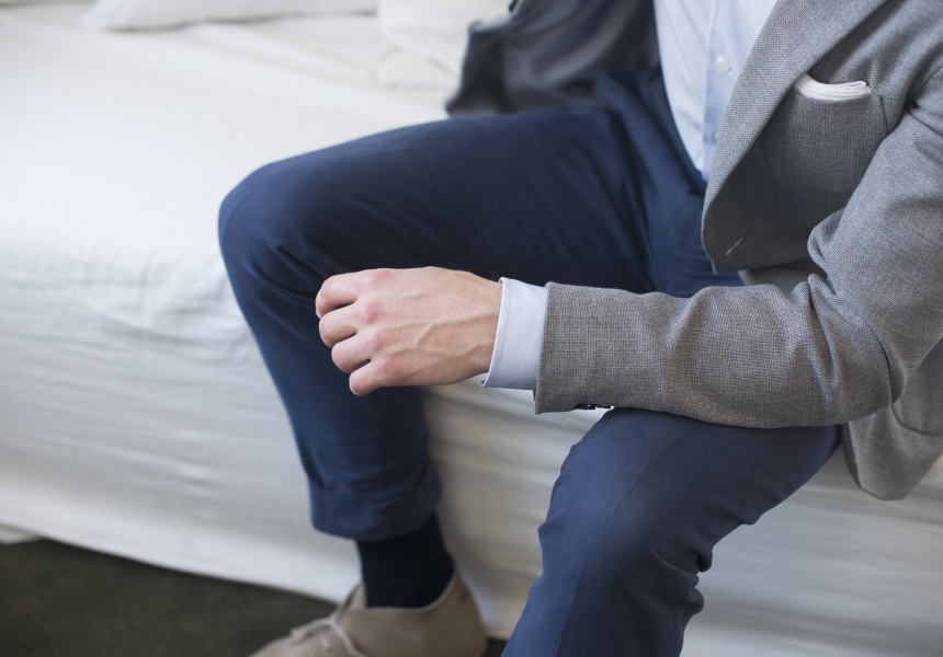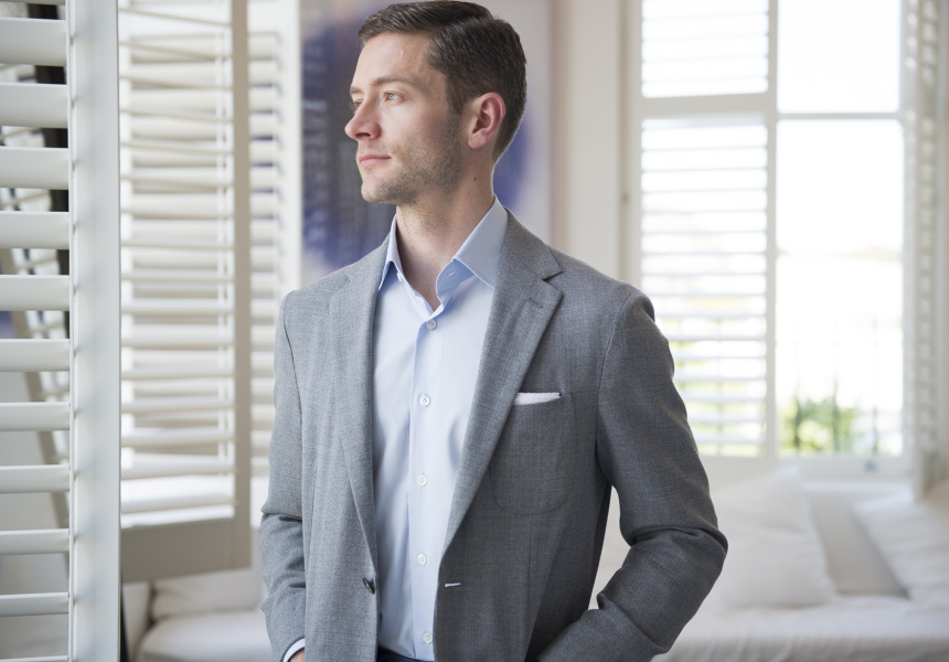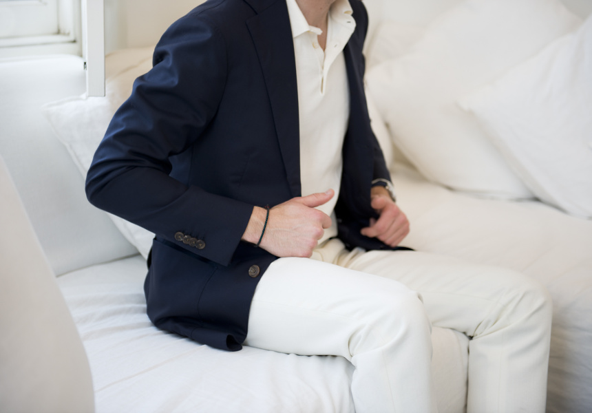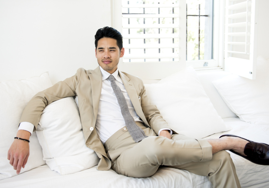 Riley says you need to find a versatile suit; one that can be taken from work to play, while remaining fresh. The key is fabrication. “You can get some amazing merino these days,” says Riley. “You can get a weight that is lighter than most shirts, meaning it keeps cool, and it still won’t crease.”