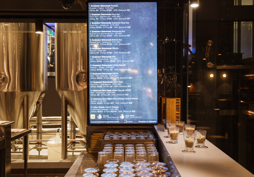 Bankstown Sports Club is vast. A little world unto itself, it comes complete with “Little Italy”, Chinatown and a sizeable casino. But underneath the bright lights is a bar dedicated to brews and burgers, Basement Brewhouse, which reopened in November last year following a mammoth refurbishment. The hybrid venue recently received a few new shiny toys including copper tanks holding 100 litres of beer.