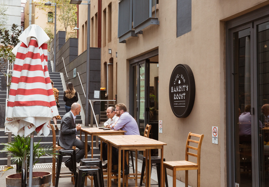 Last year the partners parted ways and the shirt store was moved to Barangaroo. Hofbauer stayed in the laneway but used the opportunity to reimagine the space as Bandit's Roost, a cafe and bar with a deli-style menu, an extensive whisky list and well-made coffee.