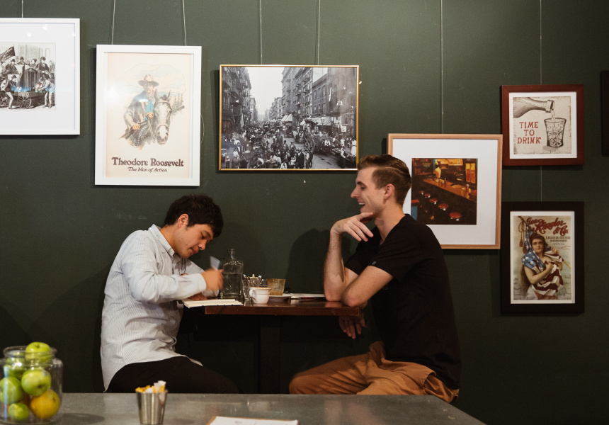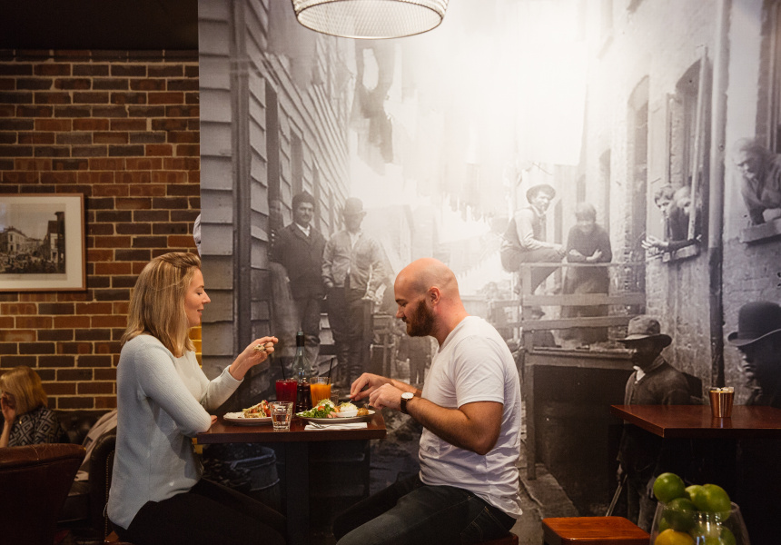 The shelves that once held ties and cufflinks now show off jars of pickles. And the service counter in the centre of the room has been turned into the bar and kitchen. If you're wondering about the name check out the photo at the back of the store. It was taken in the late 1800s and is of a Manhattan street gang hanging out in a laneway on the Lower East Side known as the Bandit's Roost.