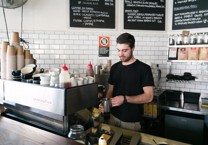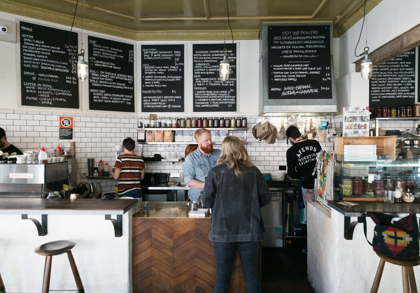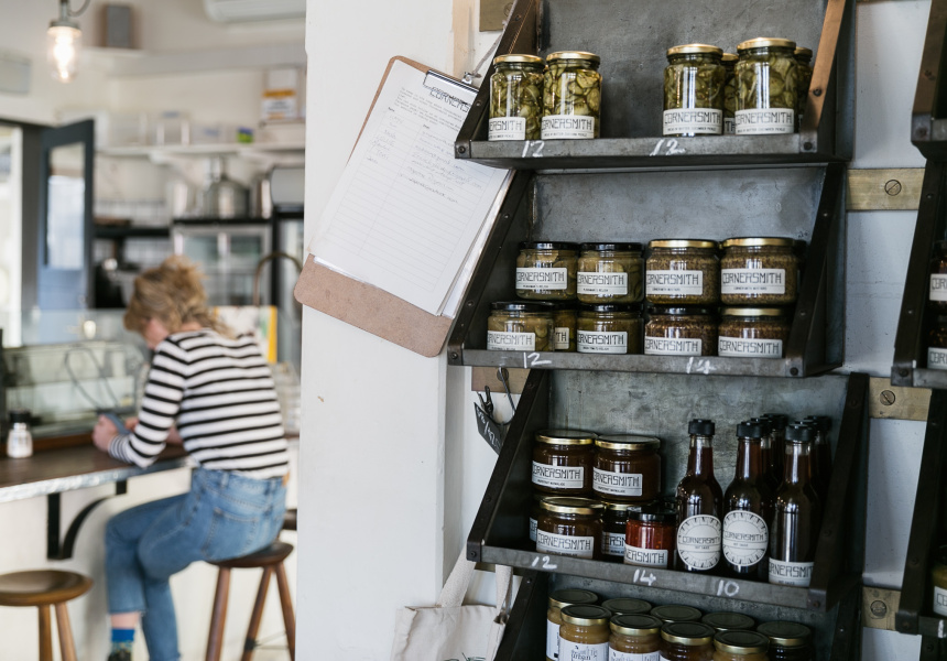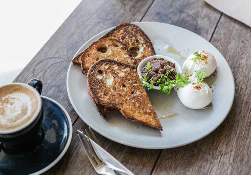 Poached eggs on toast aren’t revolutionary until they’re topped with seasonal chutney made by the Cornersmith’s skilled picklers. Pear and thyme chutney is on the menu for the winter. It’s spiced, sweet and savoury, enhanced by the woodiness of the thyme. Cornersmith serves only free-range eggs, sourcing them from small chicken farms in the Southern Highlands. The eggs are poached to a perfect state of wobbliness in the cafe’s small open kitchen and served with chutney on slices of chewy sourdough from the Bread and Butter Project.