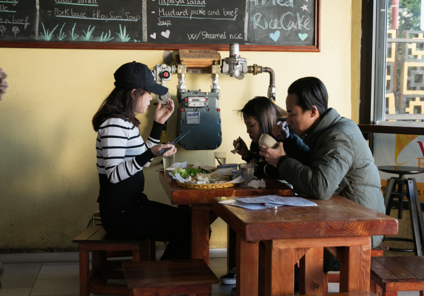 Although bento boxes are Japanese, the lunchbox concept is popular in Vietnam too. “They like lunch box in Vietnam,” says manager Anna Huang, “especially for office people.” Called com binh dan or com hop in Vietnam, VN’s lunch boxes come with rice, salad, soup and a main. You can build your own, or try one of owner Xuan Thang Nguyen’s recommendations: sweet stew with pork belly and egg.