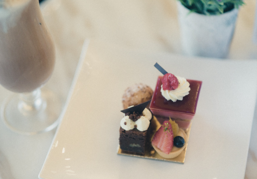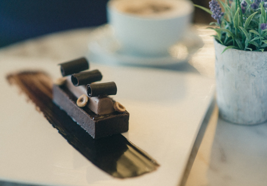 Signature Valrhona desserts include the indulgent Raspberry Délice, a densely layered flourless chocolate sponge with raspberry compote and Valrhona chocolate mousse, beautified with pistachios, silver leaf and fresh raspberries. To share, consider the playful Fondue au Chocolat, with generous condiments of fresh strawberries, house-made marshmallows, caramelised bananas and petit choux filled with cream. For a quick fix, we recommend the La Tradition beverage, with either Valrhona milk or dark chocolate, served hot or cold.