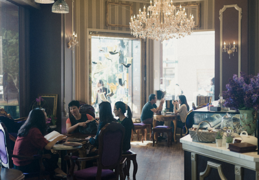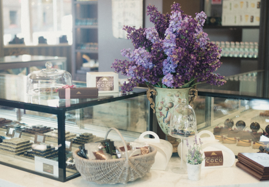 The most recent glitzy addition to Sydney’s inundation of specialist chocolate stores is the Parisian-inspired Princess Coco Chocolaterie, located opposite Darling Park. With plush purple lounges, velvet, crystal chandeliers, champagne striped wallpaper and pots of lavender, Princess Coco’s salon gratifies the most prominent cocoa aristocrat with imported French Valrhona bon bons, petite temptations of Carafutti Abricot (ganache with caramelised apricot pulp) and Ganache thé Jasmin (ganache infused with Chinese jasmine green tea).