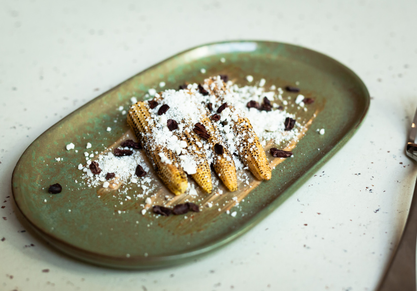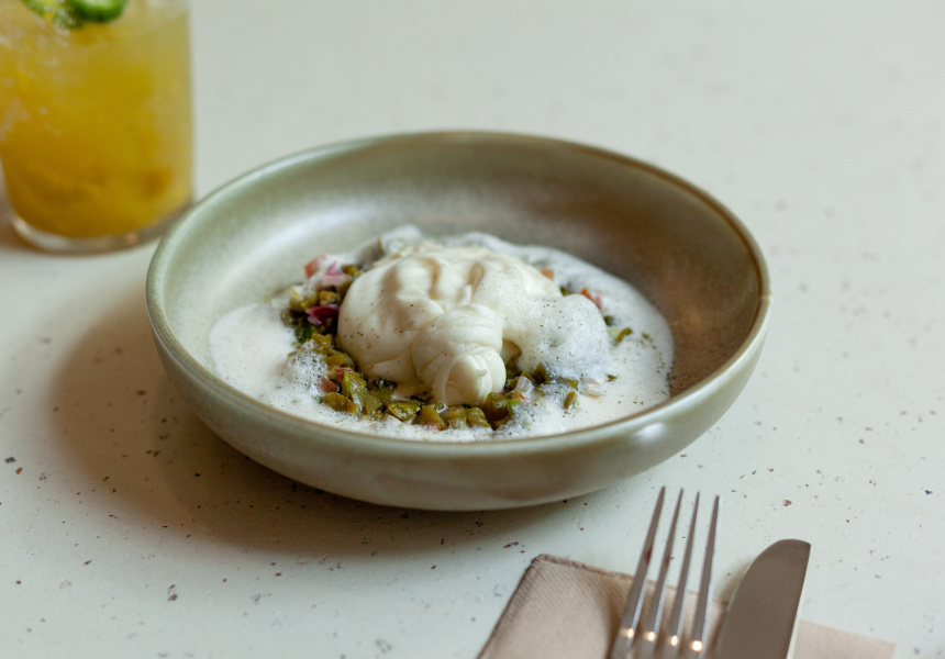 Huerta has a talent for modernising classic Mexican food and marrying it with Australian ingredients, and the results are delightful and surprising. Take his nopales (“no-pah-lays”), or cactus. Huerta pickles the cactus and serves it with burrata and milk infused with lemon myrtle. Each bite offers a new flavour. First you get the tangy cactus, then the creamy burrata followed by the gentle lemon-infused milk.