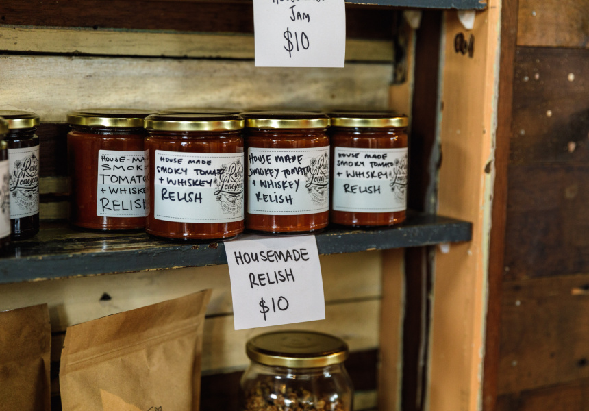 When a “for lease” sign went up in the decal-covered window of the shop, formerly Early Bird Mixed Business, it was a sign from the universe, says Lewis. The pair tore the Coca-Cola stickers off the windows, pulled down the ceiling tiles and chipped back the plaster to reveal a warm, worn-brick open space with plenty of natural light.