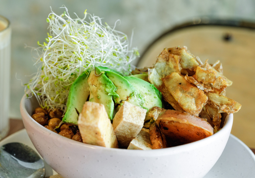 “This is our first cafe project together [and] we wanted to represent ourselves,” says De Angelis. “Most of the dishes are our home recipes. It’s largely vegan, but there are a few things that have eggs, full-cream milk or haloumi."