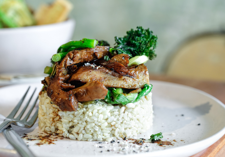 At lunch, the mock-meat game is strong. Try the tender “duck” served on fluffy brown rice with bok choy and broccolini to mop up the sauce. Lewis has been working on the recipe for her sweet soy sauce with ginger and citrus for years. Ruby Lonesome also does a memorable fried chicken that’s perfectly seasoned and fried until the batter is crisp and the inside juicy. It’s delicious and comes with the added bonus of “not having any gross little veins”. A side of house-made kimchi is the ideal palate-cleanser.