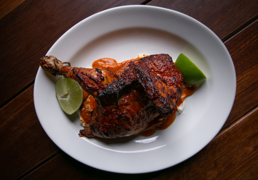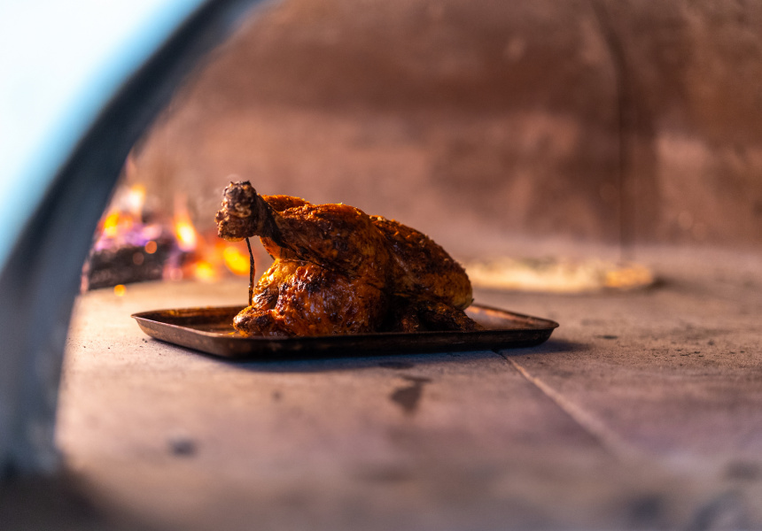 “The chickens are brined in Adam’s secret recipe, then either rolled in secret spices and fried, or roasted and finished in the wood-fire oven, to give that caramelised and charred killer combination.”
