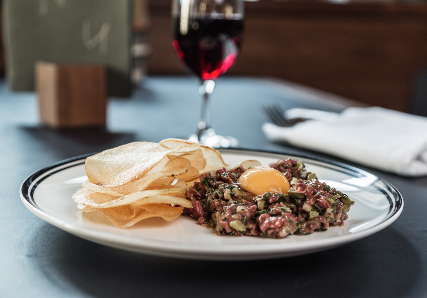 For those seeking lighter fare, there’s snapper served with a simple side of greens, or grilled salmon. The small plates menu has plenty of vegetarian and vegan options – roasted pumpkin with barley and pomegranate or beetroot, feta, marjoram and balsamic. There are also some raw options – steak tartare, kingfish and salmon gravlax.