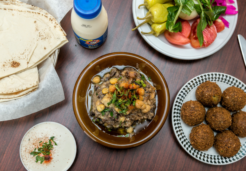 If you ask the staff what to eat at El-Manara, they’ll recommend the foule, a traditional Lebanese fava bean and chickpea mixture cooked with lemon juice and served with plenty of olive oil. Go with their suggestion.