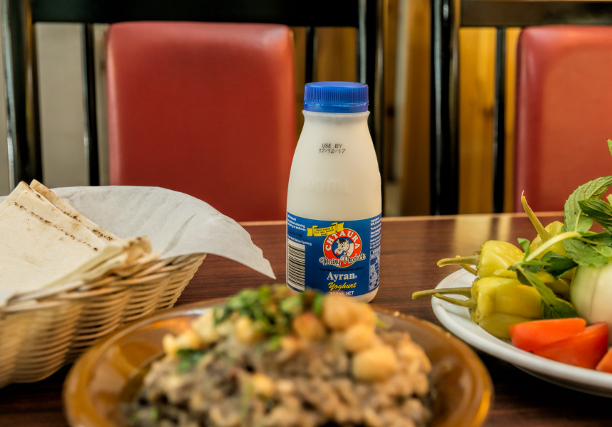 To drink, try the ayran, a lightly salted yoghurt drink that refreshes the palate.