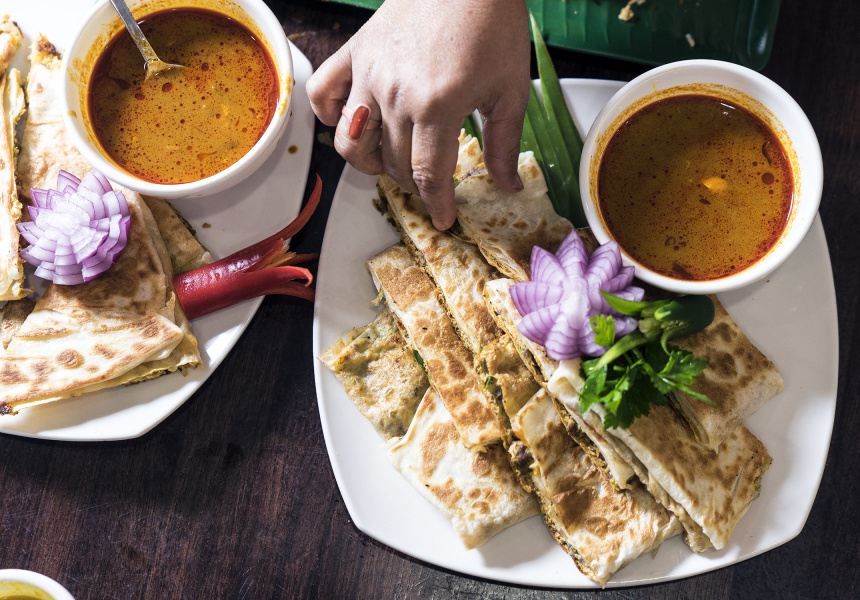 The best-known of all Mamak (Malaysians of Muslim-Tamil descent) dishes is roti canai, a buttery flatbread usually served with dal and sambal. Amma’s Kitchen makes its own.