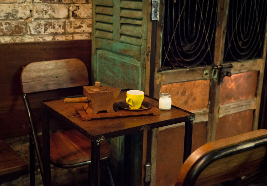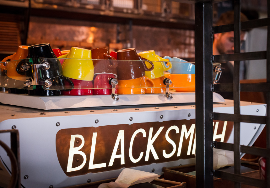 Directly opposite the sunshiny space of the Prince Alfred Park swimming pool, the dim and theatrical interiors of Blacksmith cafe make the most of the name. Business partners Young Jin Cho and Nami Park have included a huge amount of detail in keeping with the cafe’s name, from mallets swinging from the ceiling to metal studwork on the tables and chairs. It’s a fun theme which sets this cafe apart. Blacksmith is the inner-city arm of the popular Mona Vale cafe of the same name, and here it does everything in house, from the sourdough bread to the pomegranate and black forest cakes.
